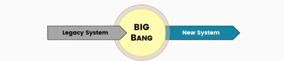 • Alto risco. Como tudo acontece de uma vez, qualquer erro pode causar interrupções significativas. É comum ser usada apenas em emergências.